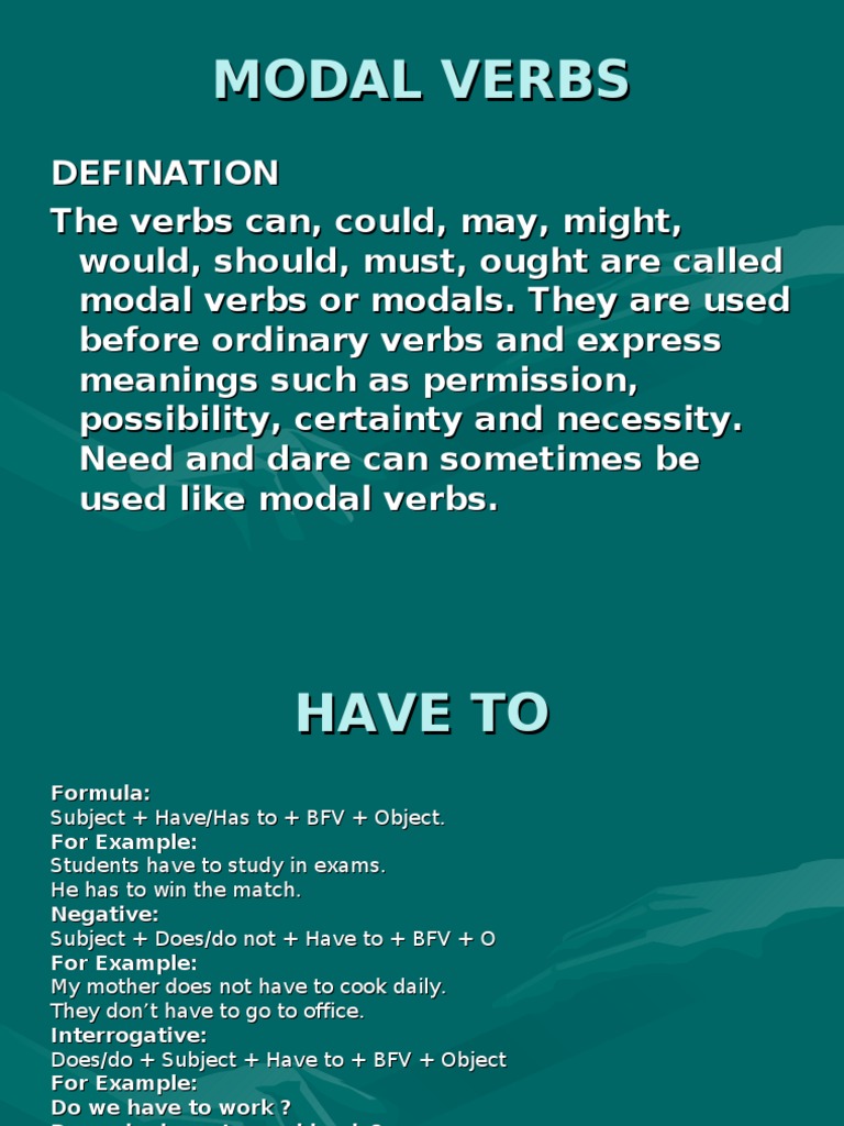 驚くばかりHave To Must Should - 子供向けぬりえ from easiestenglishlearning.files.wordpress.com Definition from wiktionary, the free dictionary. A modal verb is like a flavoursome ingredient in a recipe; Main meanings of modal verbs and their substitutes are given in the first column. Auxiliary verbs include forms of do, be. Modal verbs always accompany the base (infinitive) form of another verb having semantic content. A speaker or writer can express certainty, possibility. It is intended to be orientative, showing how english modal verbs can vary in their modal functions. Краткий обзор модальных глаголов и их заменителей.